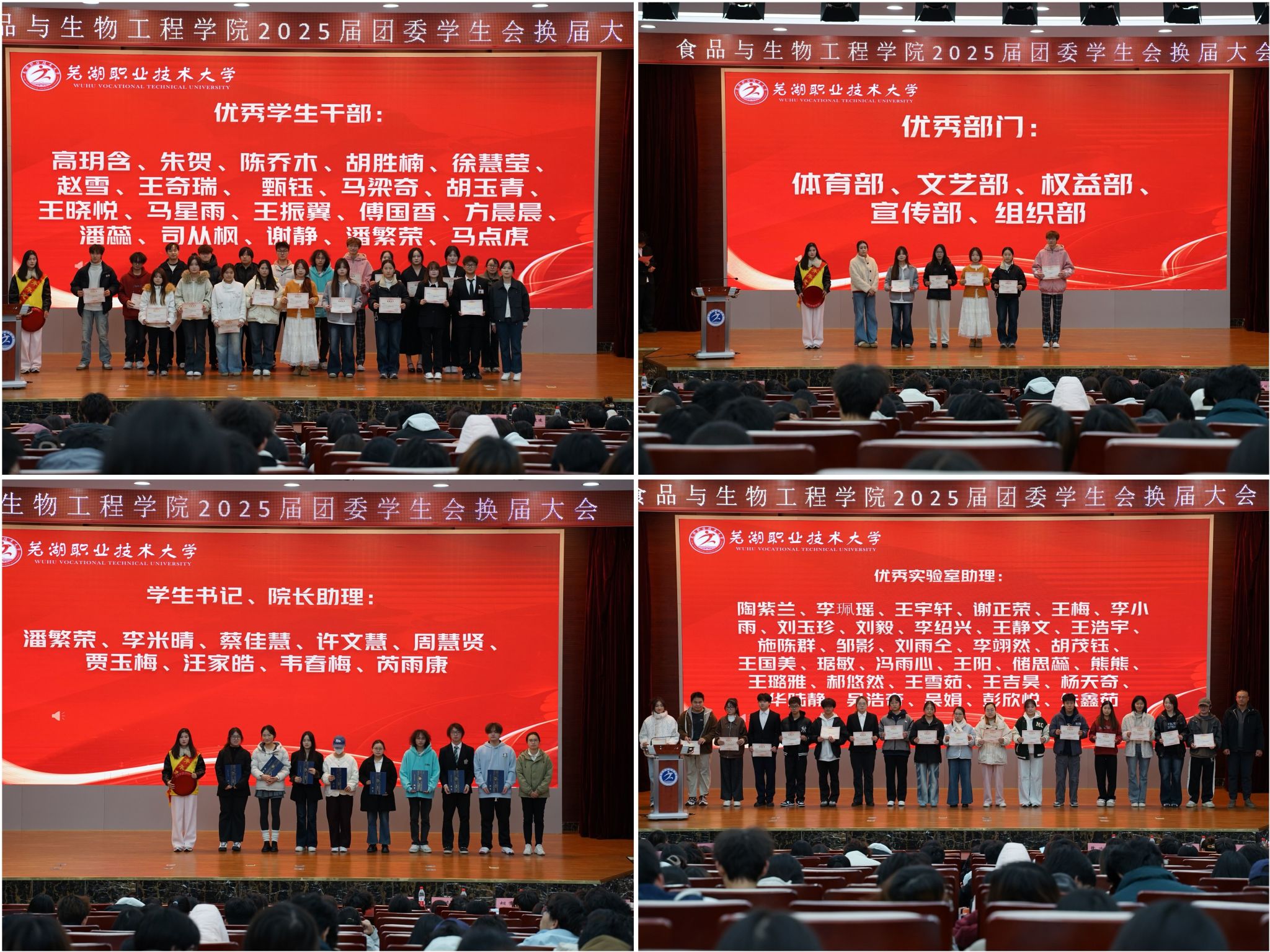 11月19日,食品与生物工程学院2025年团委学生会换届选举暨表彰大会在图书馆学术报告厅顺利举行。本次大会以强化组织建设、发挥学生干部服务育人职能为核心,旨在搭建部门经验共享、协同共进的交流平台,学院全体辅导员老师、实验室负责人徐迪老师、团委学生会成员以及全体大一学生参加。