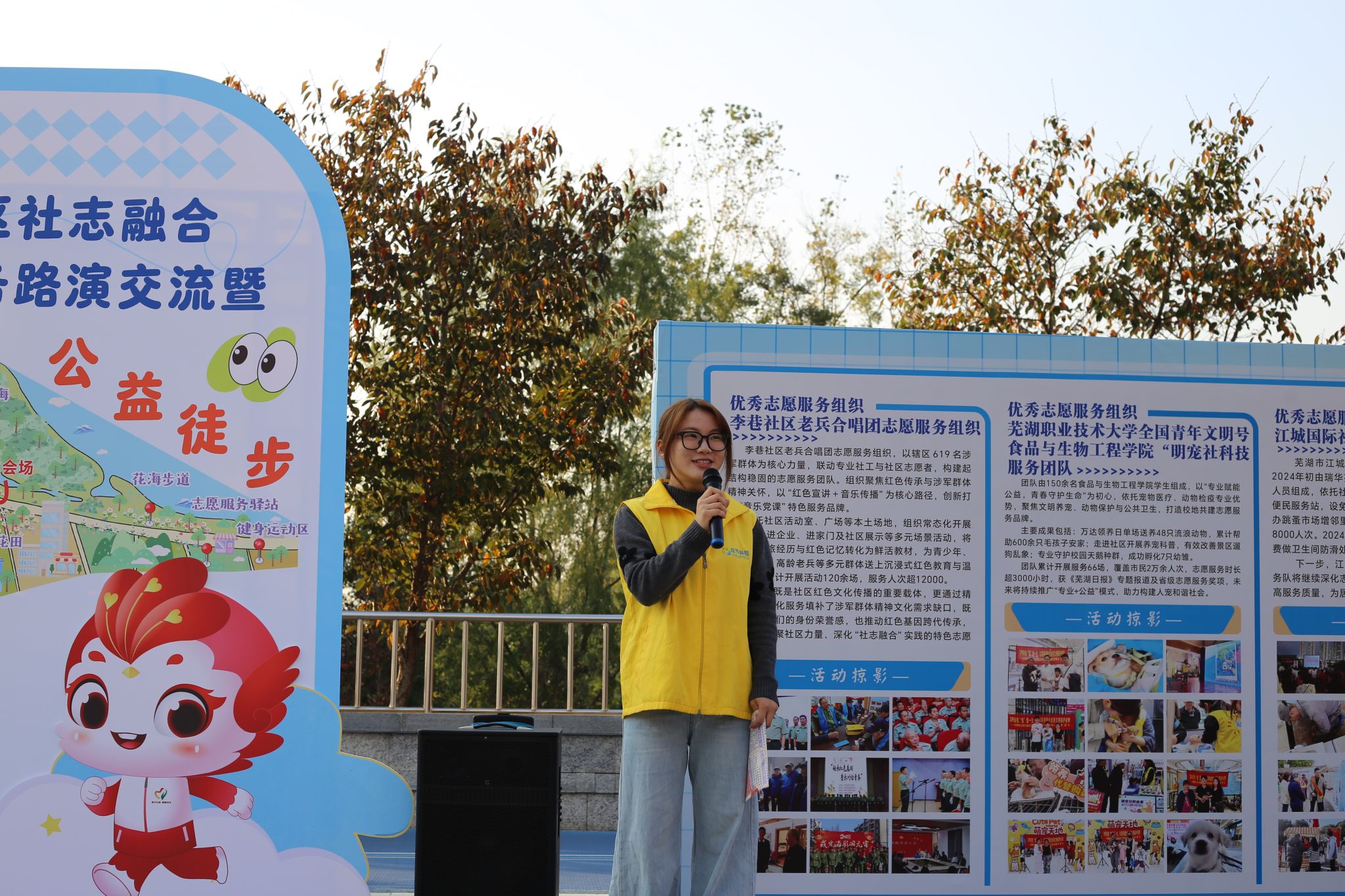 近日,“星火赓续·志愿弋江”弋江区社志融合志愿服务路演交流暨公益徒步活动在芜湖市十里江湾开展。此次活动由弋江区委社会工作部牵头,区城管局、区志愿服务促进中心协同,芜湖市爱无疆社会服务中心承办。我校食品与生物工程学院师生受邀并带领大学生社团明宠社、烘焙社志愿者参加。