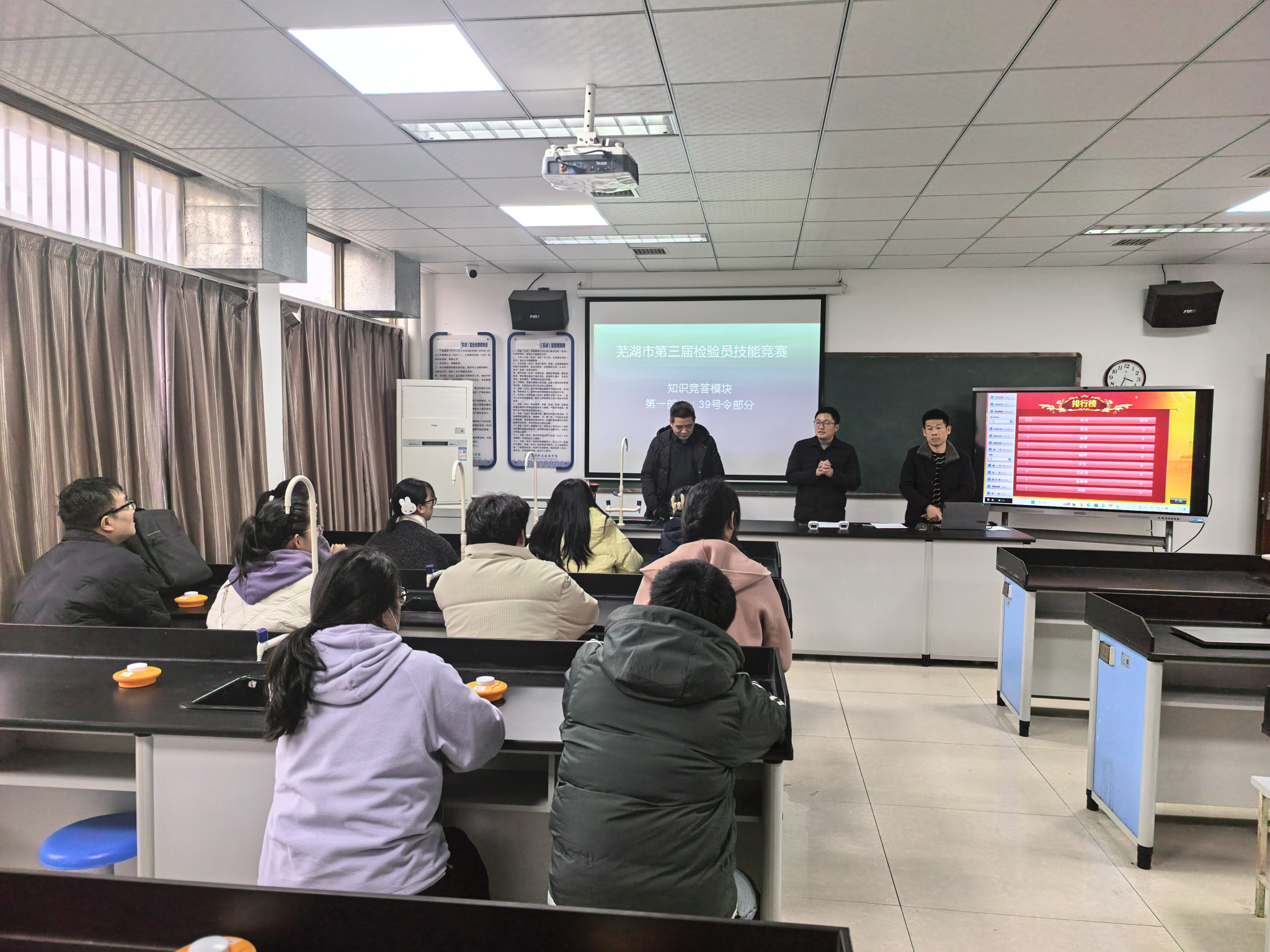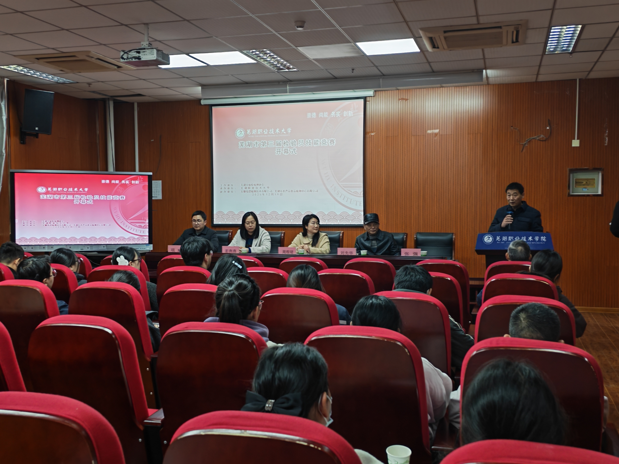 12月19日,芜湖市第三届检验员技能竞赛在芜湖职业技术大学成功举办。本次比赛由芜湖市检验检测协会主办,芜湖职业技术大学食品与生物工程学院承办,安徽瑞普检测技术有限公司、芜湖农产品食品检测中心有限公司协办。比赛吸引了来自全市食品、医药、化工、粮油等多个检验检测相关领域的14支代表队、共计32名选手同台竞技,展现了新时代芜湖市检验检测人员的专业素养与工匠精神,芜湖市科协、芜湖市市场管理局相关领导出席开幕式,竞赛开幕式由芜湖职业技术大学食品与生物工程学院徐迪老师主持。