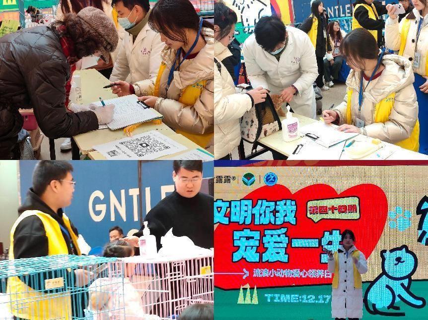 与此同时,团队志愿者以现场汇报的形式为市民们介绍了团队公益项目的发展历程、人兽共患病的防治知识、宠物行为驯导等内容。在做好科普宣传的同时,大学生志愿者们耐心为市民答疑解惑,用行动将爱心洒满江城,赢得广大市民连连称赞。此次活动共送养猫狗26只,服务人数150余人。